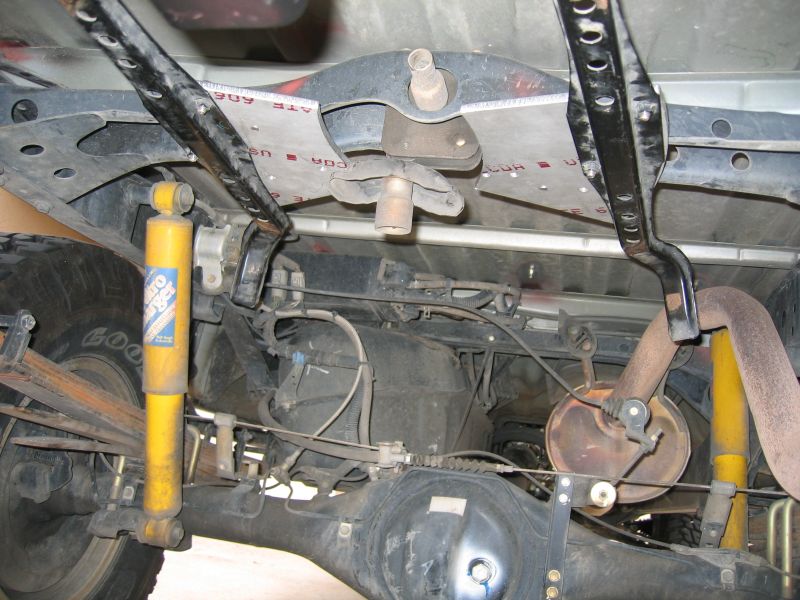 Since my spare tire grew in size, I needed to move the tire carrier arms. I used these scrap pieces of aluminum to move the larger spar aft and away from my exhaust. I also wrapped the exhaust with a heat shield material. Now I have my spare in the stock location.
